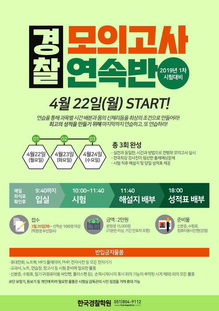 [특강] 2019-1차대비 모의고사연속반 4/22(월) START!