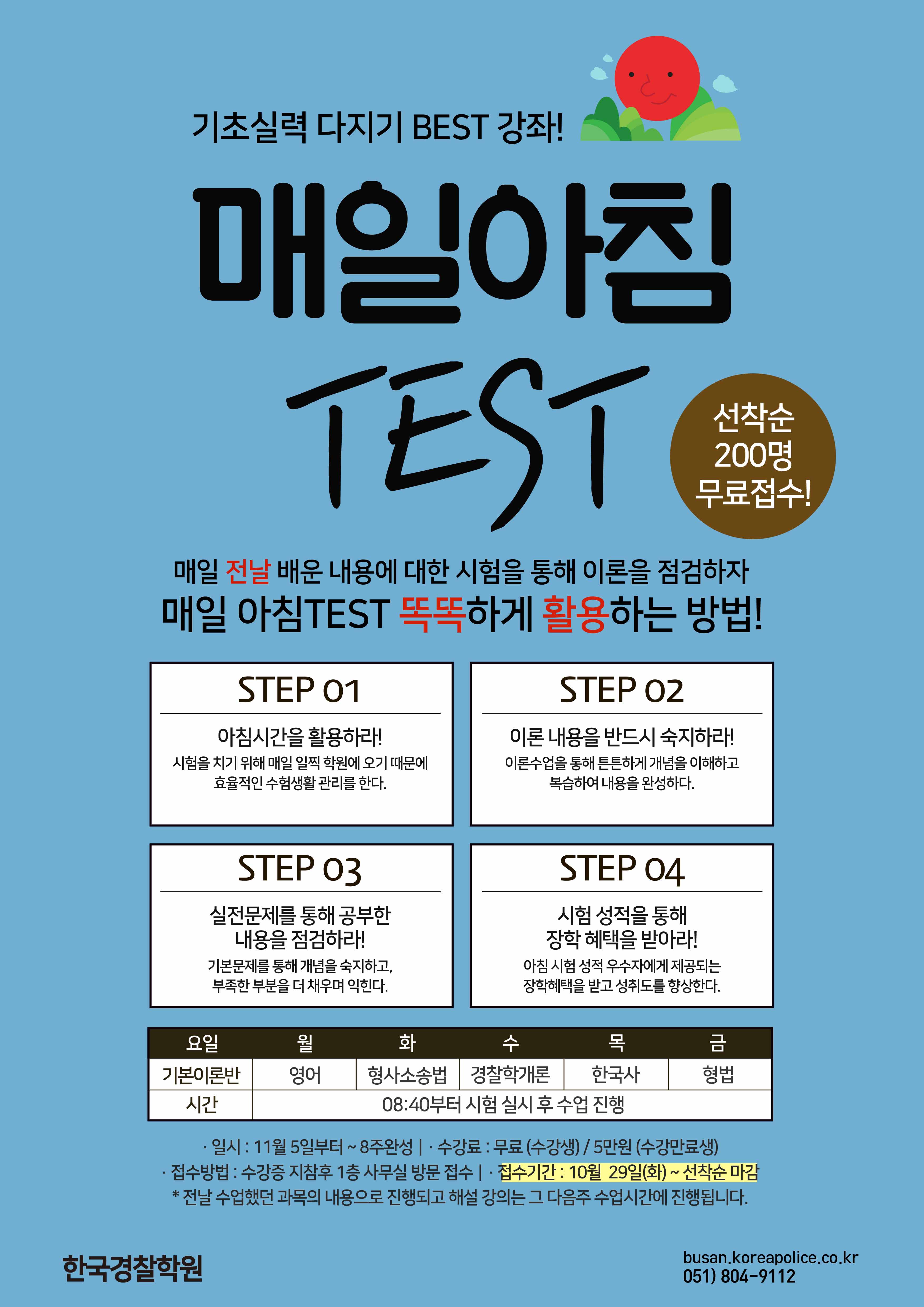 글제목 :      11~12월 아침 테스트 접수안내 - 11월 5일 첫.시.험
