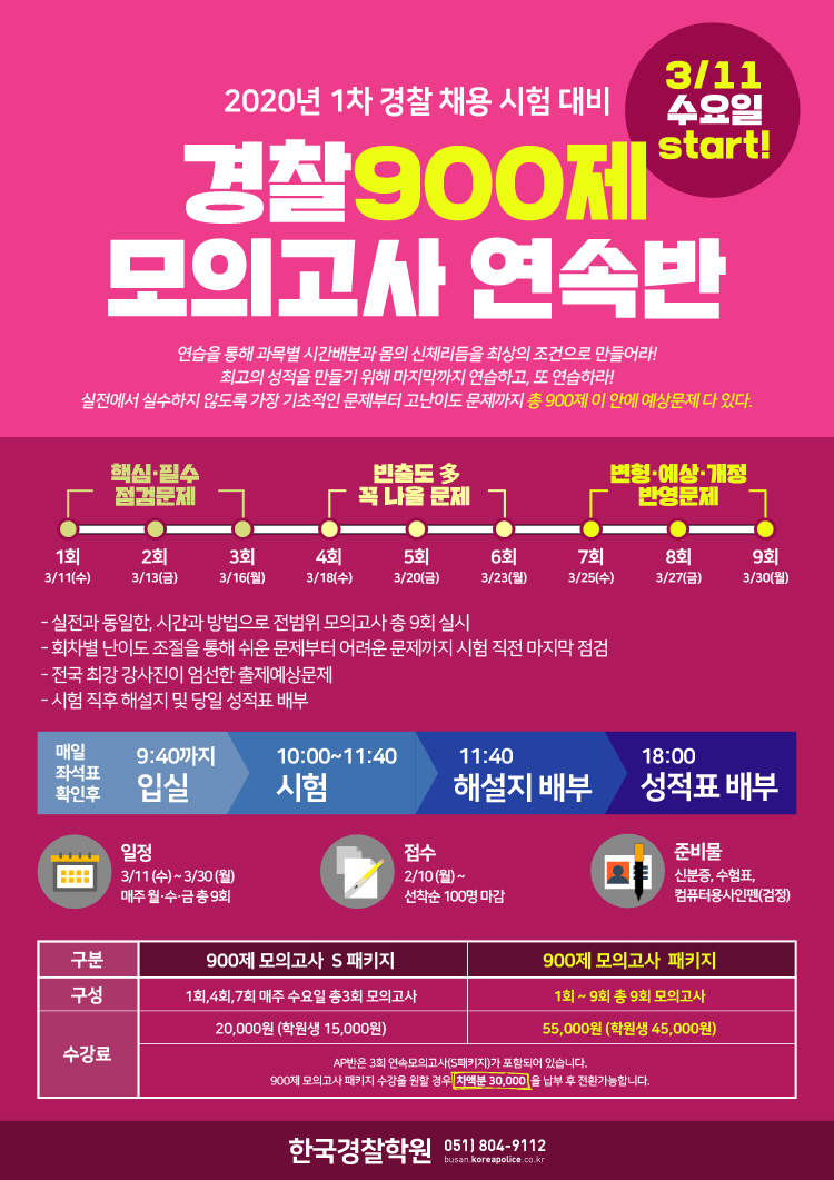 [특강] 2020-1차대비 900제 모의고사연속반 3/11(수) START!