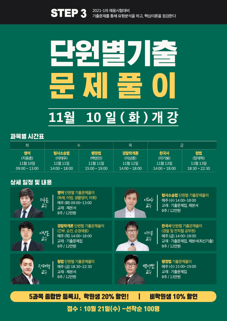 [특강] 2021-1차 step3 단원별 기출 문제풀이 11/10일 (화) 개강! |