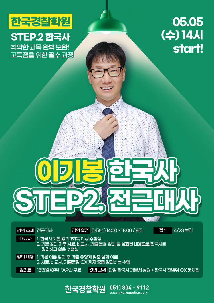 글제목 :      [특강] 2021-2차 step2 한국사 5/5일 (수) 개강!
