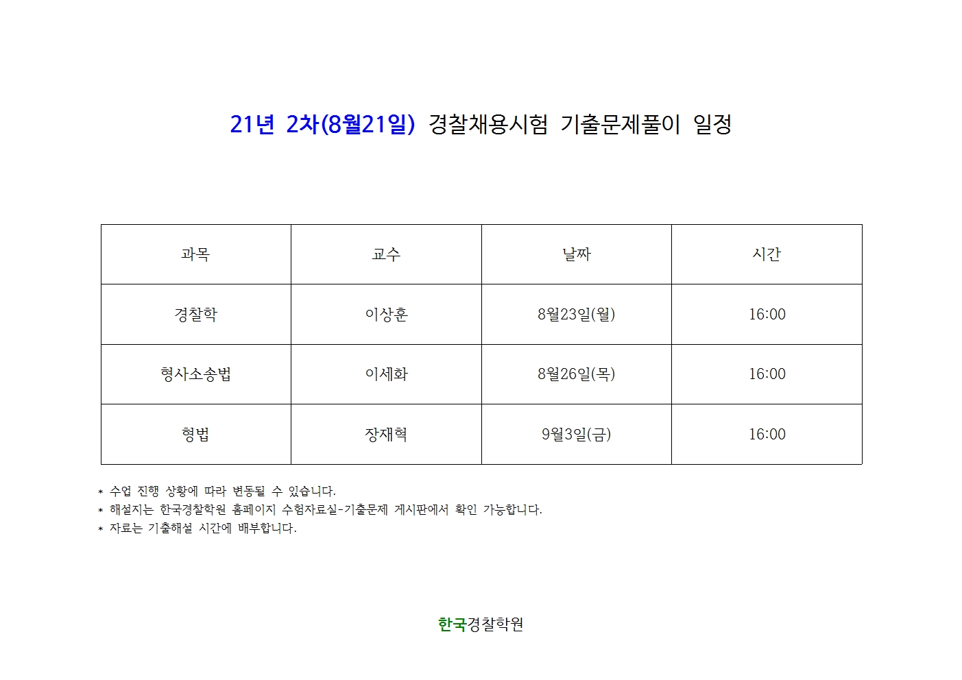 21년 2차 경찰채용시험 기출문제풀이 일정입니다.