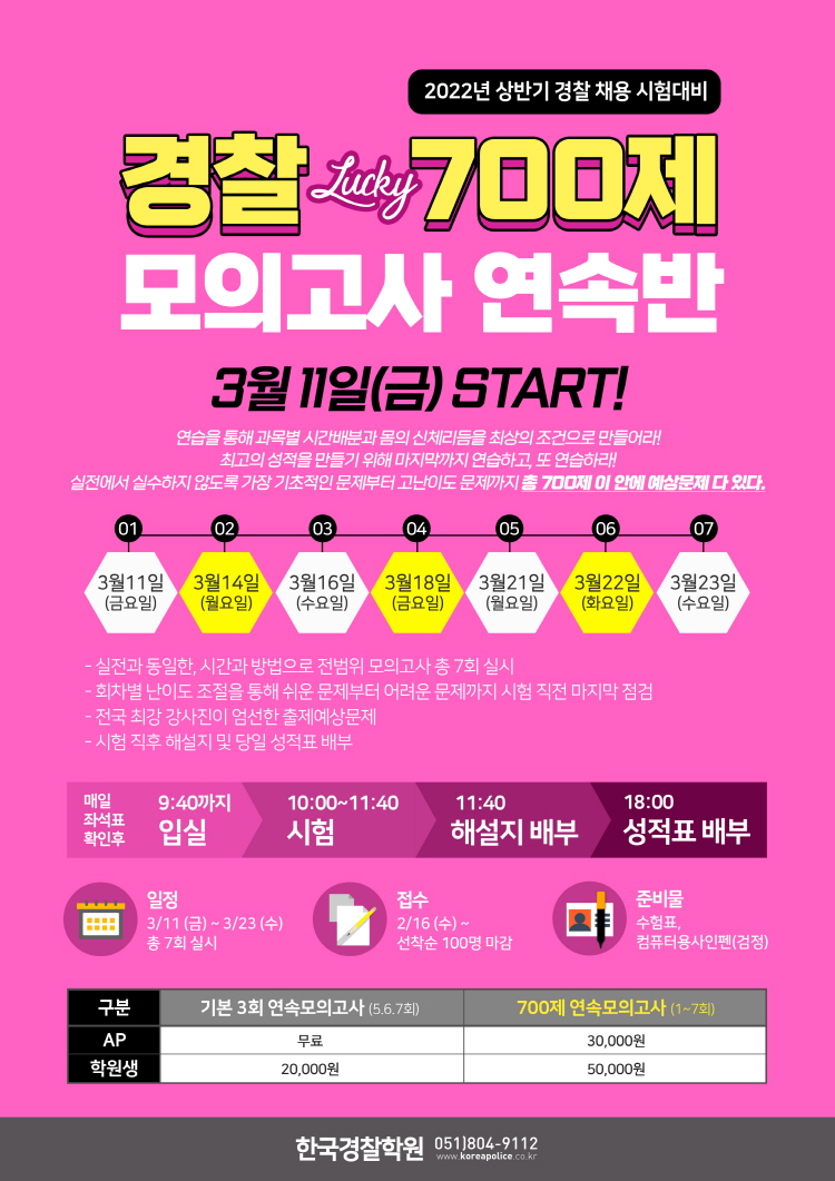 글제목 :      [특강] 22년 첫 시험 대비 700제 모의고사 연속반 안내