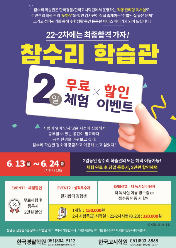 참수리 학습관(관리형독서실) 2일 무료체험 & 할인이벤트!