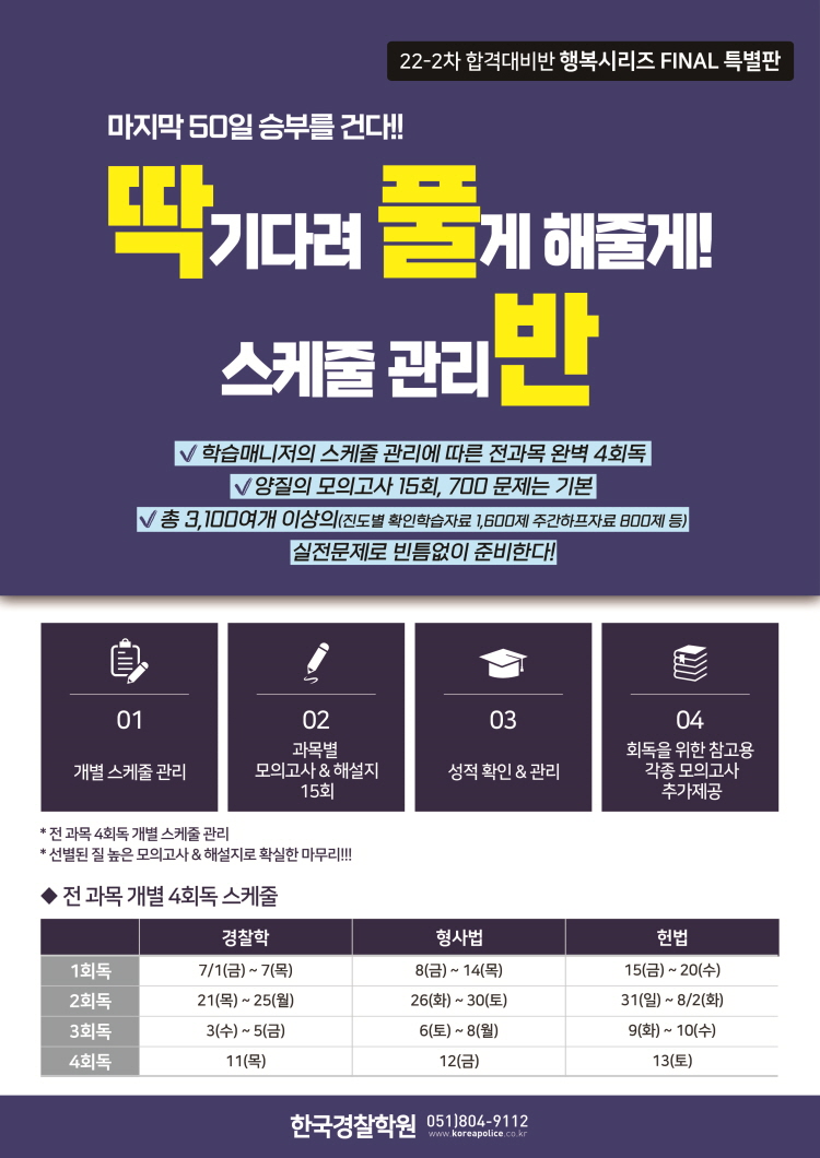 마지막 50일동안 학습매니저의 스케줄 관리에 따른 법과목 완벽 4회독!