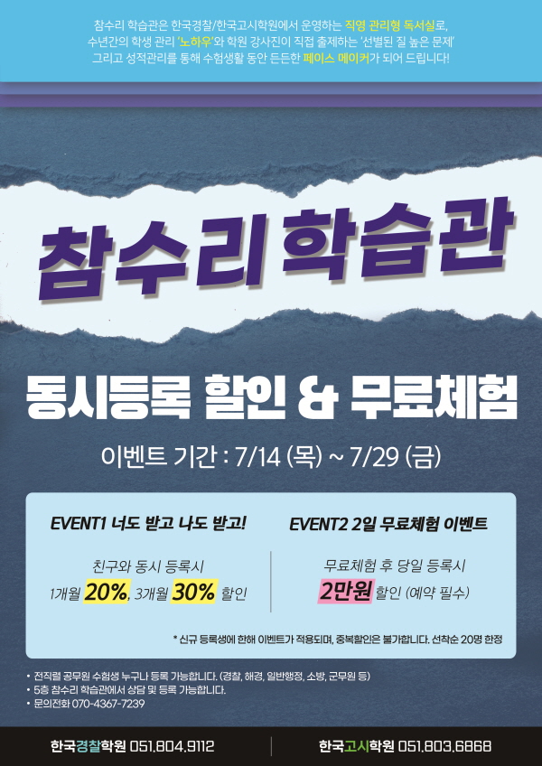 [관리형독서실] 참수리학습관 동시등록 할인 & 무료체험 이벤트