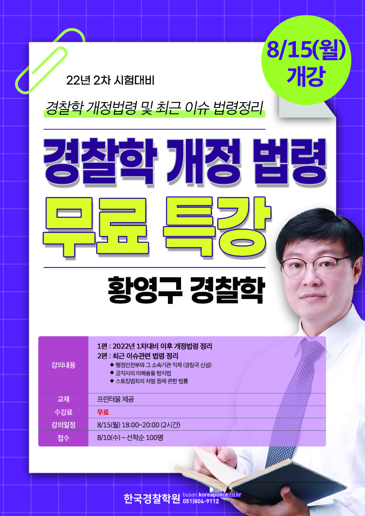 글제목 :      22년 2차대비 황영구 경찰학 개정법령 무료특강