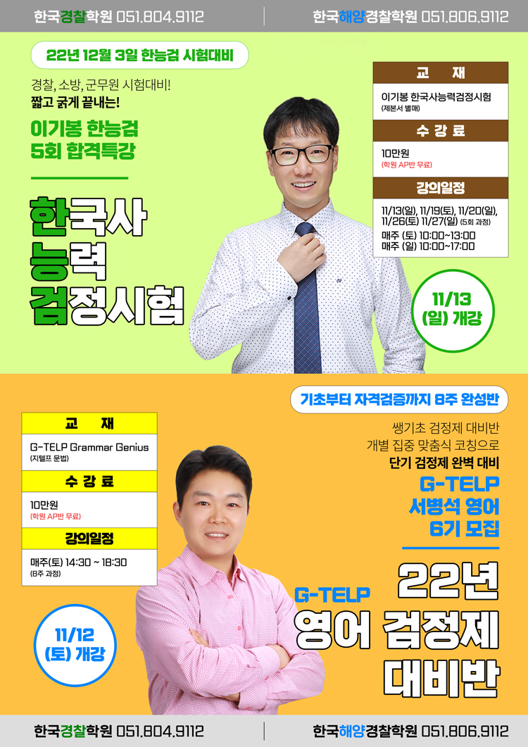 글제목 :      [검정제 특강] 22년 검정제(G-TELP,한능검) 완벽대비 11월개강