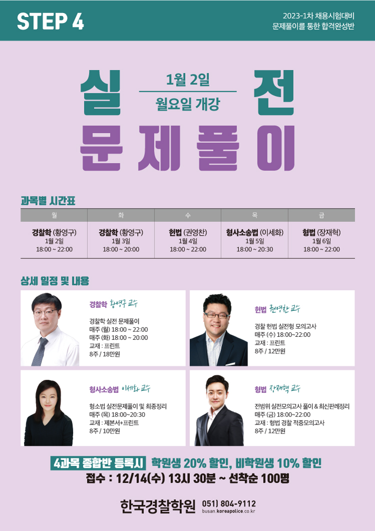 [특강] 23년 1차 대비 STEP 4 실전문제풀이 1/2(월) 개강