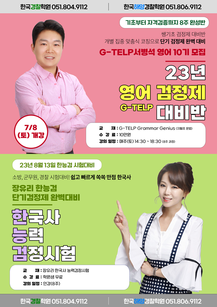 글제목 :      [검정제 특강] 23년 검정제(G-TELP,한능검) 완벽대비 7월개강