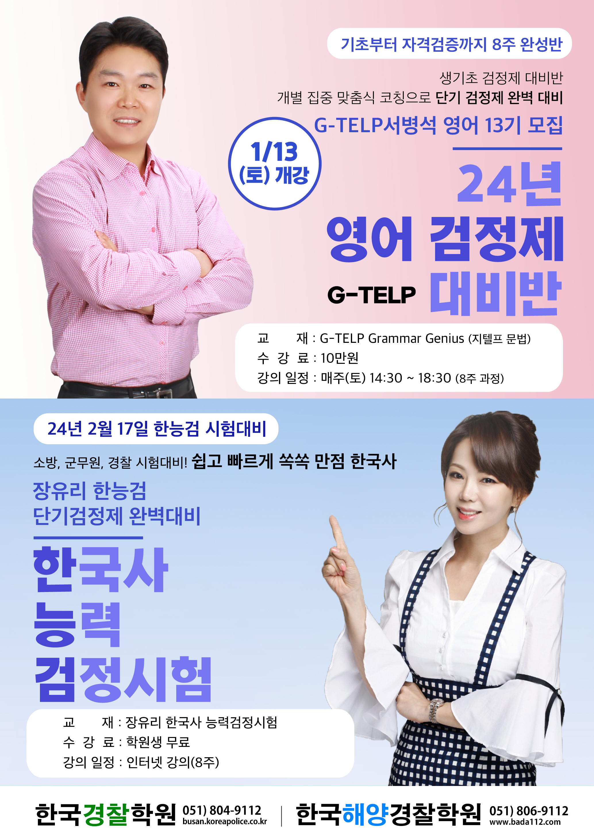 글제목 :      [검정제 특강] 24년 검정제(G-TELP,한능검)대비 1월개강