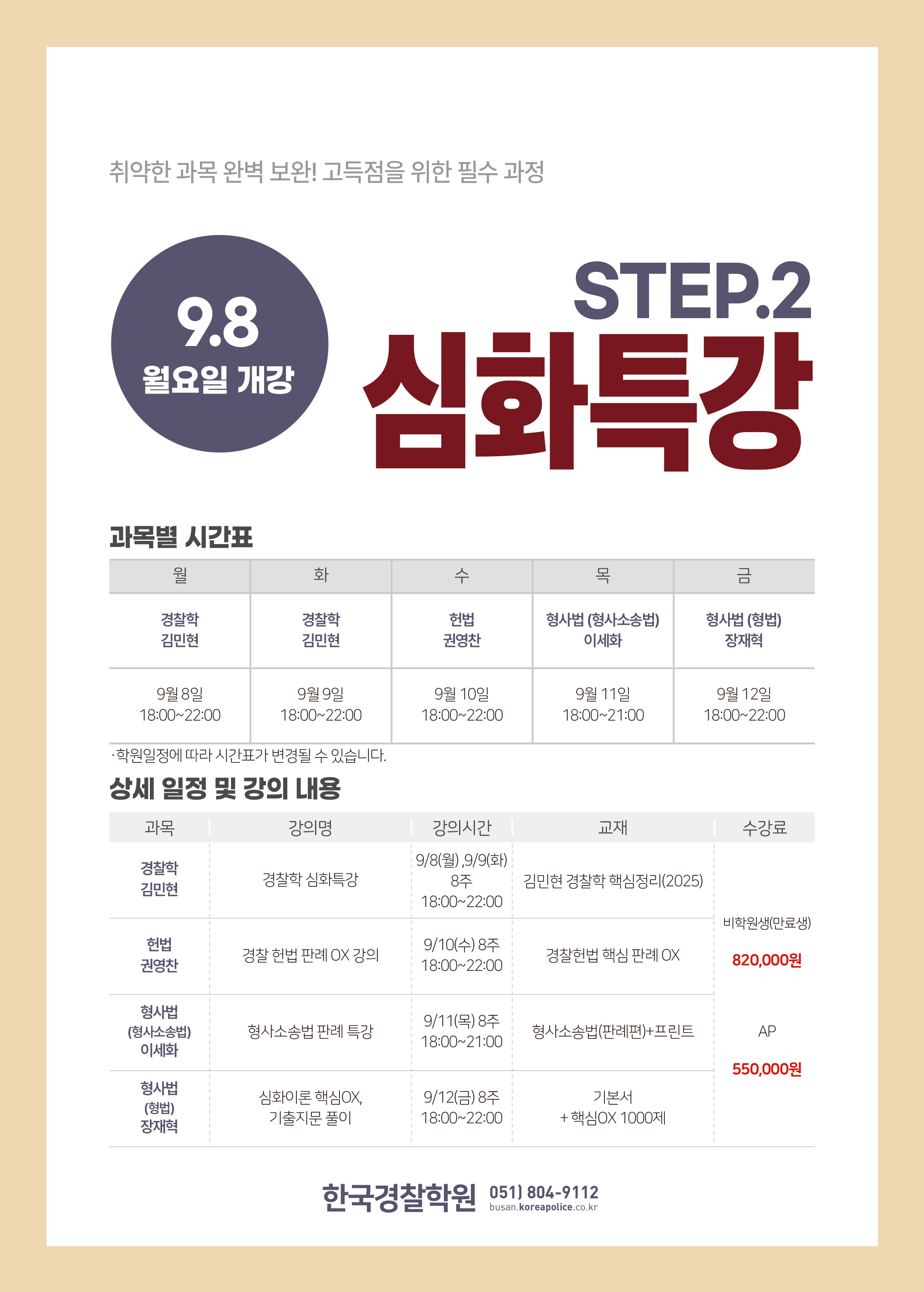 글제목 :      [특강] 26년 1차 대비 STEP 2 심화특강 9/8(월) 개강