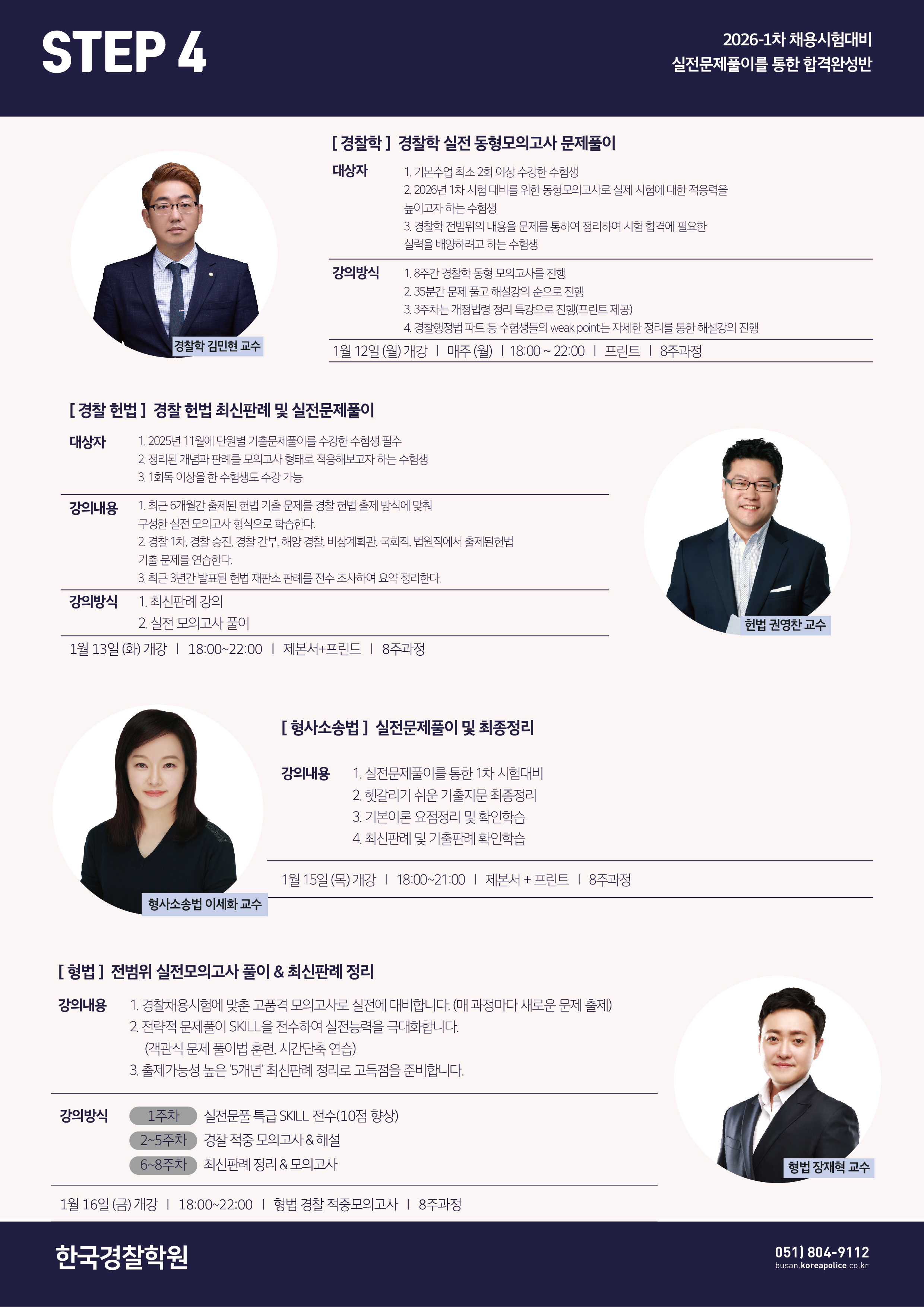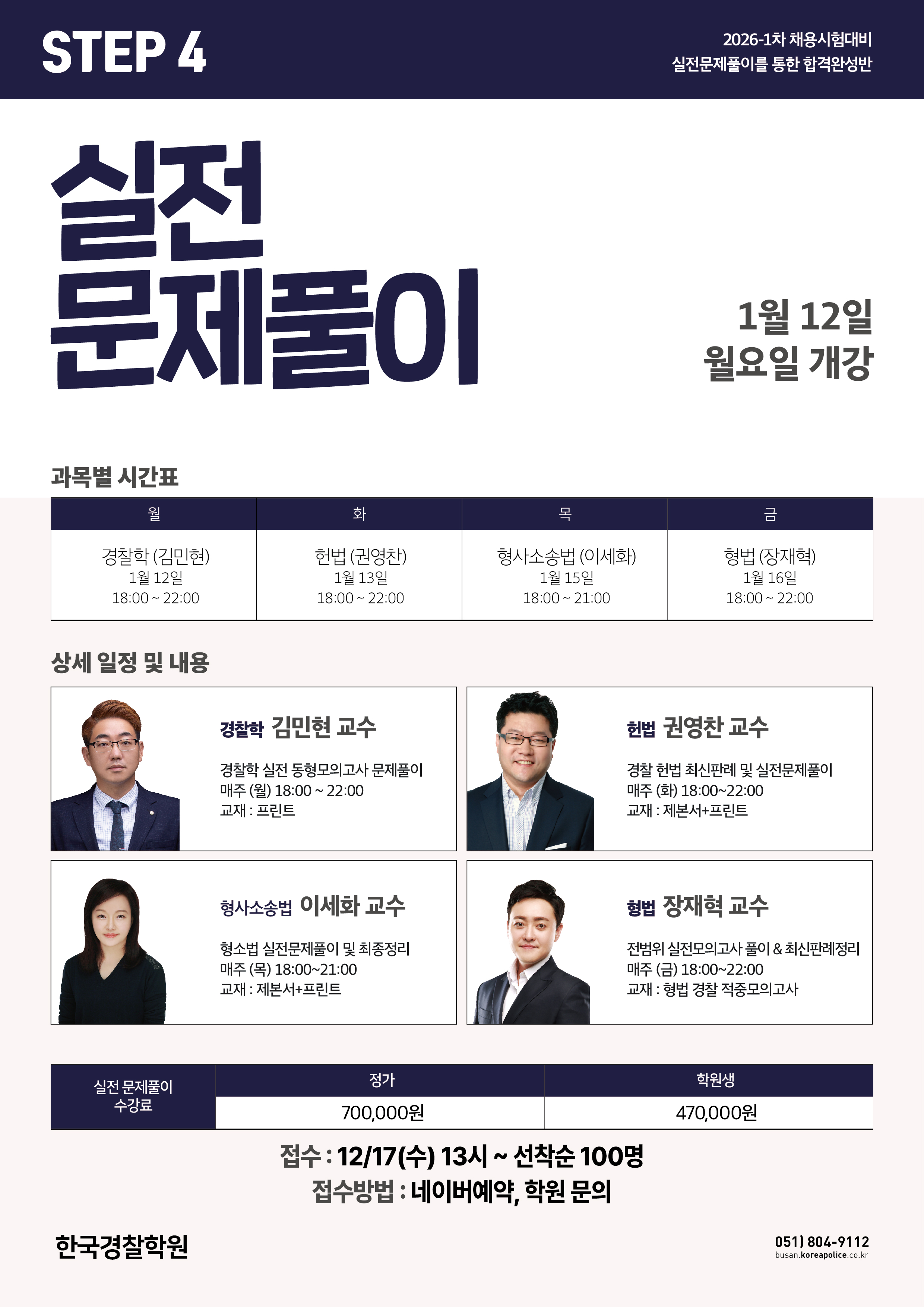 글제목 :      [특강] 26년 1차 대비 STEP4 실전문제풀이 특강 1/12(월) 개강