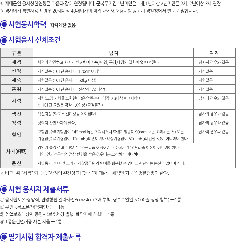 | 모집분야 | 경찰간부생 | 일반순경 (101단포함) |