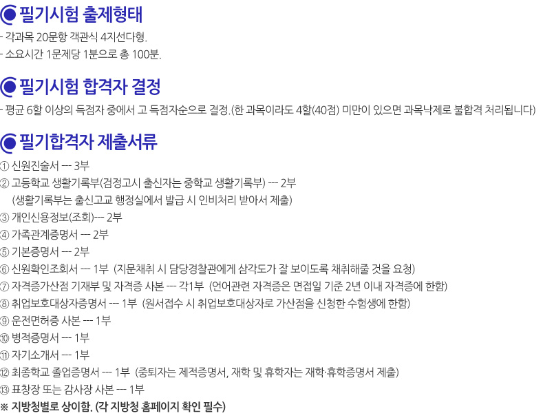 | 응시연령 | 만21세이상 만40세이하 (남녀동일) |